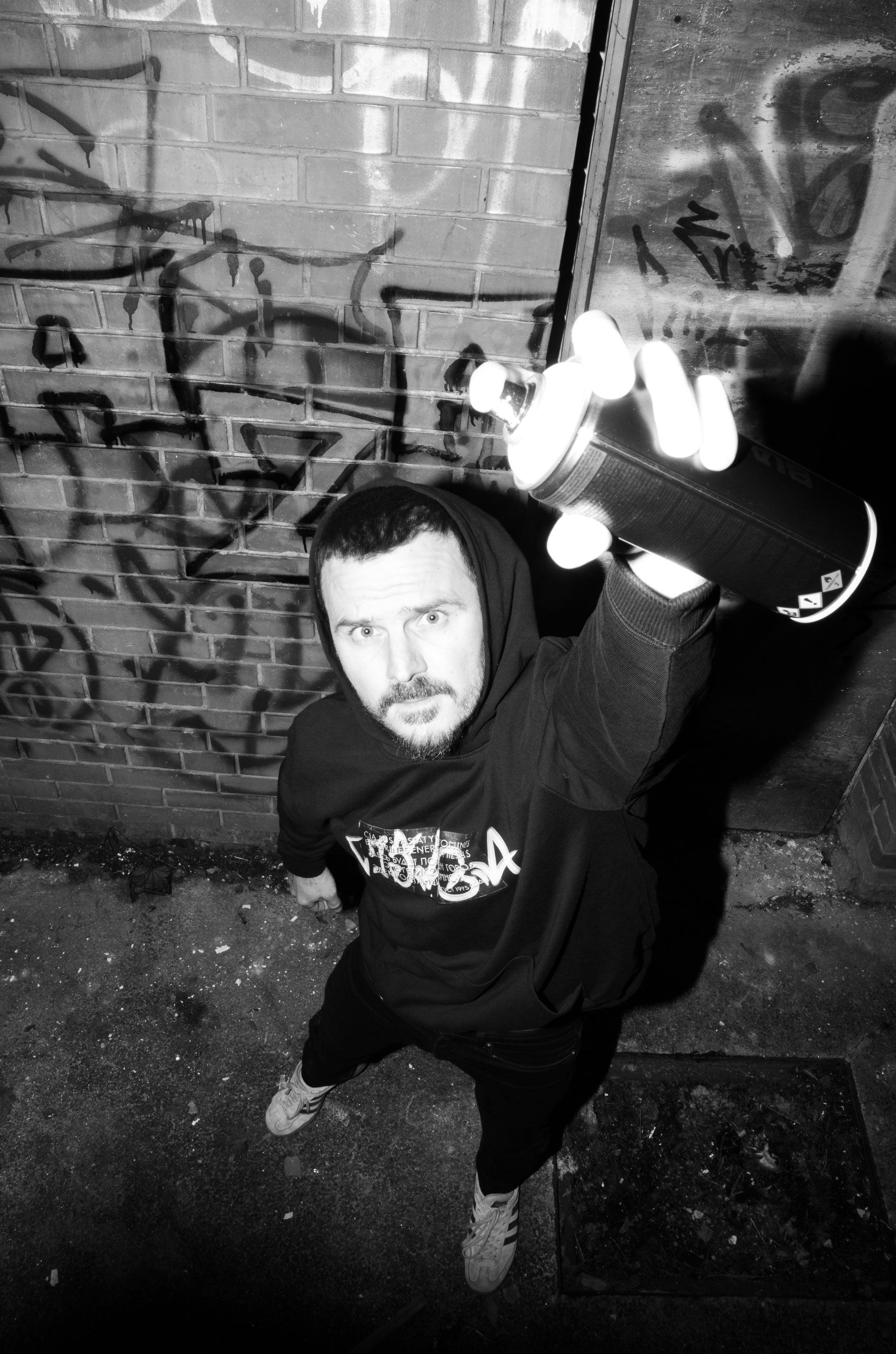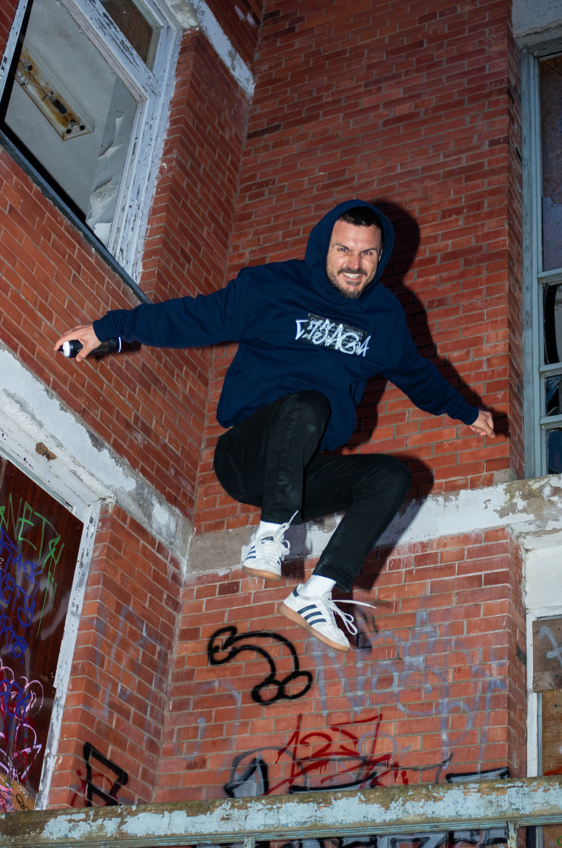 Oversized hoodie with a graffiti-covered print of the founding sign on stone. A mix of Visaginas heritage and street energy.